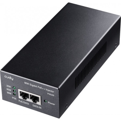 Адаптер PoE Cudy PoE400 забезпечує максимальну вихідну потужність 90 Вт. Він оснащений двома гігабітними портами: один для підключення до вашого комутатора або маршрутизатора, інший — для передачі живлення та даних до кінцевого пристрою.