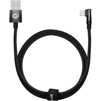 Тип - кабель, Тип конектора 1 - USB 2.0 (AM), Тип конектора 2 - Lightning, довжина - 1 м, Номінальний струм - 2.4 А, нейлонове покриття, кутовий коннектор, Колір - чорний
