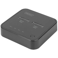 Подвійна док-станція Digitus NVMe для твердотілих накопичувачів M.2 до 4 ТБ на слот. Керуйте загалом двома SSD-накопичувачами різних форматів загальною ємністю до 8 ТБ. Завдяки вбудованій функції автономного клонування ви також можете копіювати спогади без підключеного кінцевого пристрою одним натисканням кнопки. Процес копіювання відображається світлодіодними індикаторами на пристрої. Підтримуються твердотілі накопичувачі M-Key і B&M-Key NVMe у популярних форматах 2242, 2260, 2280 і 22110. Легко розширюйте ємність багатьох пристроїв USB Type-C і клонуйте M.2 SSD в автономному режимі одним натисканням кнопки.