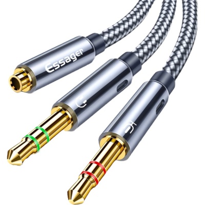 - Кабель мультимедійний 3.5mm F to 2x3.5mm M 0.25m black Essager (EYPS35-TLB0G) U1139198