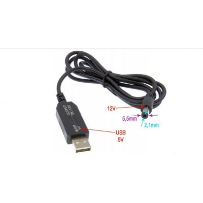 - Кабель живлення Перетворювач напруги DC 5V to 12V (inp:USB 5V/2Amax-outp:DC-male 5,5x2,1 12V/1Amax) RCI (C512) U0935623