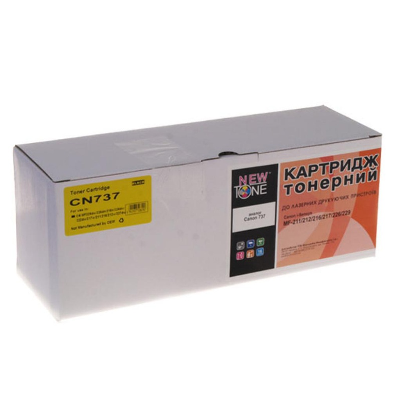 Картридж NewTone для Canon 737 (CNT737E) - это тонерный картридж ТМ NewTone, который подходит ко всем разновидностям популярных моделей принтеров, копиров и МФУ. Отлично подходит для эксплуатации как дома, так и в офисе. В производстве данных картриджей используются только новые комплектующие и высококлассный тонер – это позволяет добиться качественных отпечатков при минимальных вложениях. Для устройств: Canon i-Sensys MF-211 / MF-212w / MF-216n / MF-217w / MF-226dn / MF-229dw.