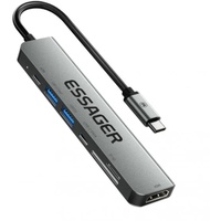 - Концентратор Essager USB-C 7-in-1 HDMI + USB 3.2 + USB-C + SD/TF gray (EHB07-QH0G-Z) U1107303