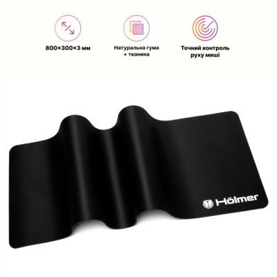Hölmer OMP-05 — це універсальний настільний килимок (Desk Mat), який пропонує величезний простір для організації вашого робочого місця. Завдяки розміру 800 х 300 мм, він легко вміщує і клавіатуру, і мишу, забезпечуючи єдність стилю, комфорт та стабільність для обох пристроїв.