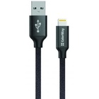 Тип - кабель, тип Вход - USB 2.0, тип Выход - Lightning, длина - 0.2 м, Номинальный ток - 3 А, тканевая оплетка, Цвет - черный