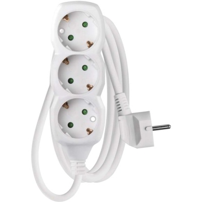 Кількість розеток - 3, євророзетка із заземленням (Тип F), Довжина кабелю - 1.5 м, заземлюючий контакт, Захист - від перевантаження, Колір - білий