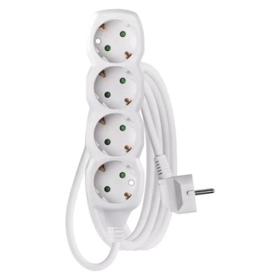 Тип - удлинитель, Суммарная мощность подключенной нагрузки - ≤ 3680 Вт, Количество розеток - 4 шт, Длина кабеля - 5 м, заземление - есть, защита - от детей, Цвет - белый