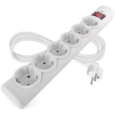 Кількість розеток - 6, Довжина кабелю - 1.5 м, заземлюючий контакт, Захист - від перепадів напруги, Колір - білий
