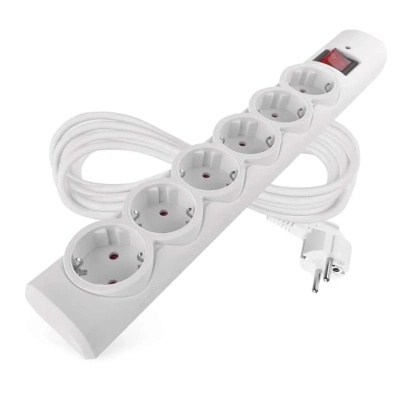 Кількість розеток - 6, Довжина кабелю - 5 м, заземлюючий контакт, Захист - від перепадів напруги, Колір - білий